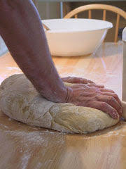 2. Transcurrido ese tiempo, pon la masa sobre la mesa y agrega la sal. Dobla la masa hacia adentro y luego estírala hacia afuera, como si estuvieras lavando ropa. Amasa durante 10 minutos aproximadamente, hasta que tengas una masa suave, tersa, satinada y que no se pegue a la mesa ni a las manos.