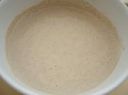 Día 1: Mezcla 40 gramos de harina con 55 gramos de agua. No tiene que ser exacto, pues la masa puede ser muy aguada o muy sólida, dependiendo de tu gusto. Una vez bien mezclada, tápala bien y déjala 24 horas en un lugar tibio.